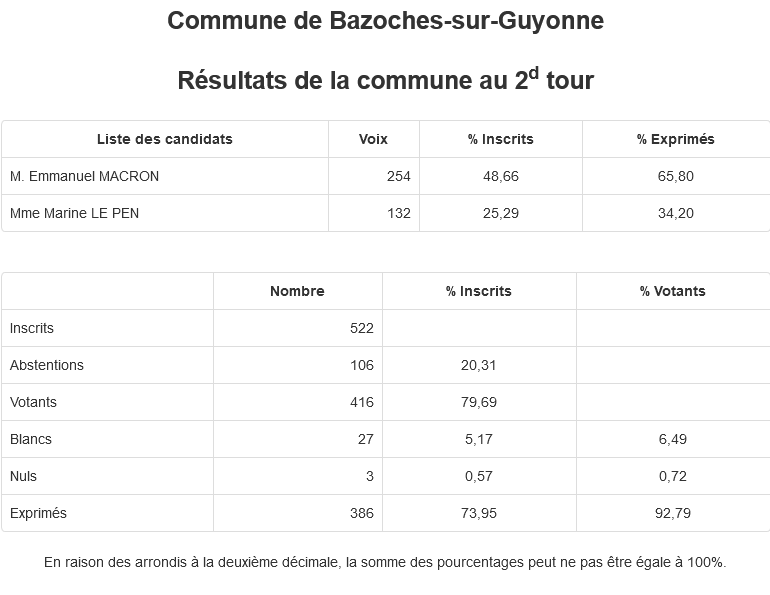 Inscrits 489 Votants 404 Blancs 52 Nuls 4