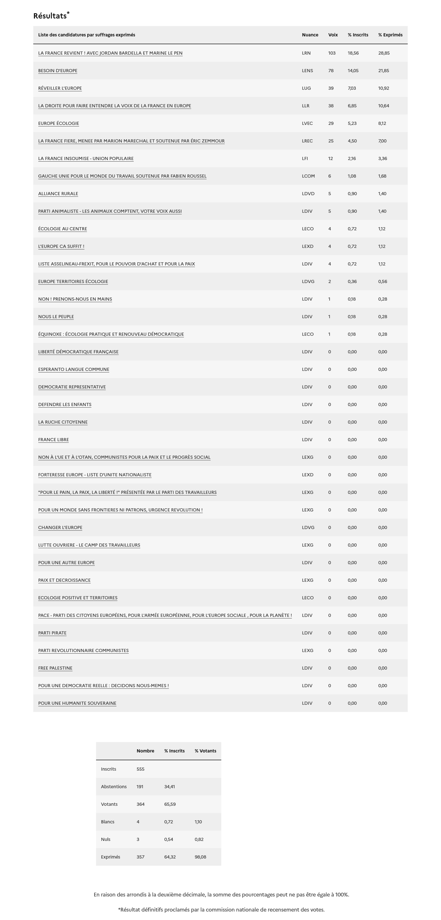 Votes nuls (en pourcentage des votes exprimés) : 1%